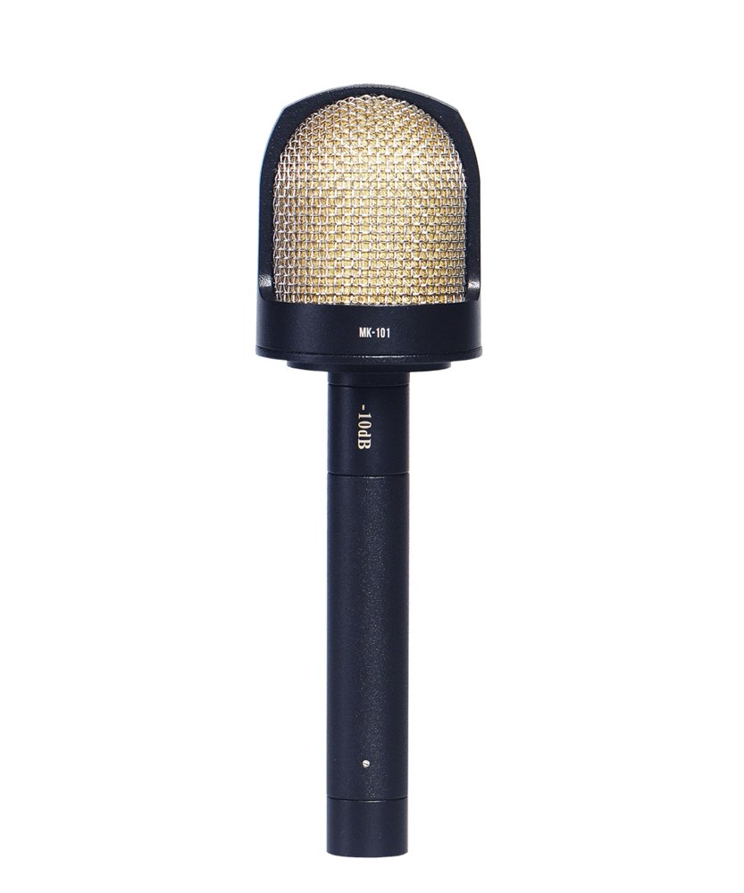- Конструкция МК-101 собирается из нескольких модулей: предварительный микрофонный усилитель, на который устанавливается капсюль кардиоидной направленности. Кроме того, в комплект входят аттенюатор «-10 дБ» и шарнирный держатель.