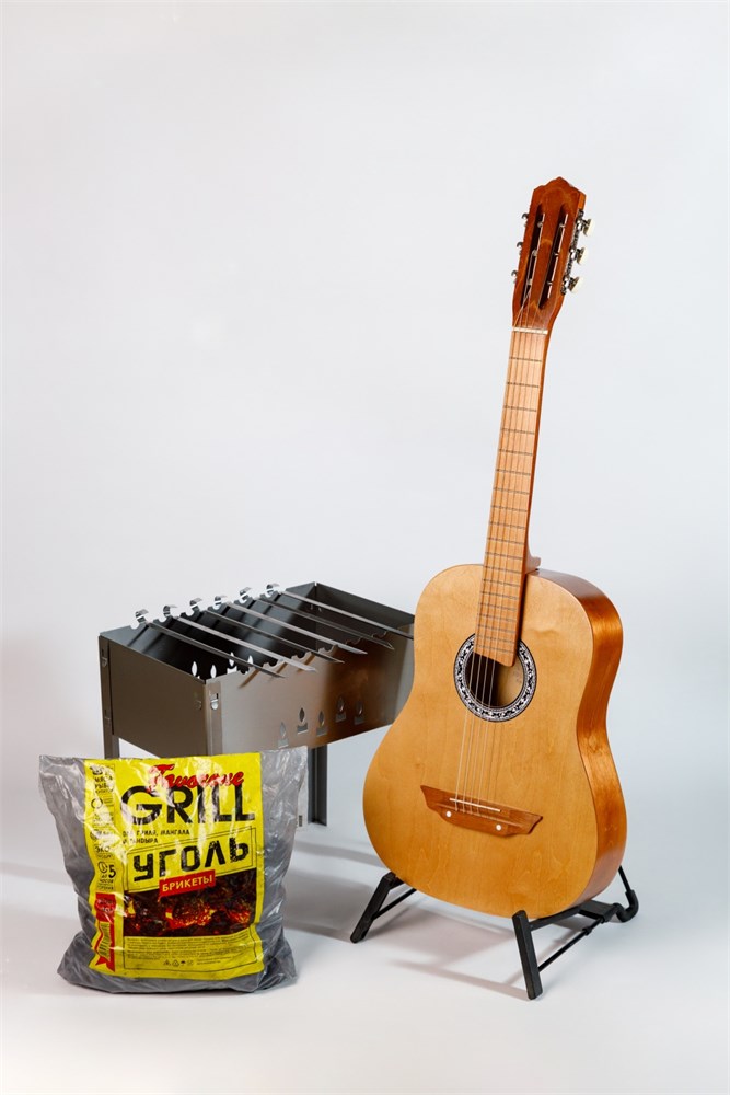 В комплекте: акустическая гитара АККОРД; сборно-разборный мангал GRILLKOFF; 6 шампуров; угольные брикеты Averon. Акустическая гитара ACD-39A-93-LN: Отличается от стандартных моделей формой грифа.