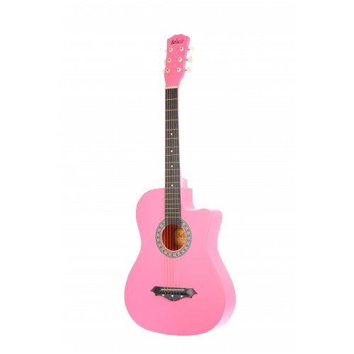 Акустическая гитара Belucci BC3820C PI 38"дюймов (4/4), форма корпуса фолк с вырезом, 6 струн, 18 ладов, струны металл. Материал корпуса из качественной древесины(липа), отделка инструмента-матовый лак розового цвета..
