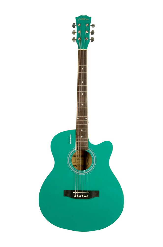 - Акустическая гитара Elitaro E4010C GR , 40" дюймов (4/4),форма корпуса: фолк с вырезом, 6 металлических струн, 20 ладов.Материал корпуса выполнен из качественной древесины(липа), отделка инструмента-глянцевый лак зеленого цвета.