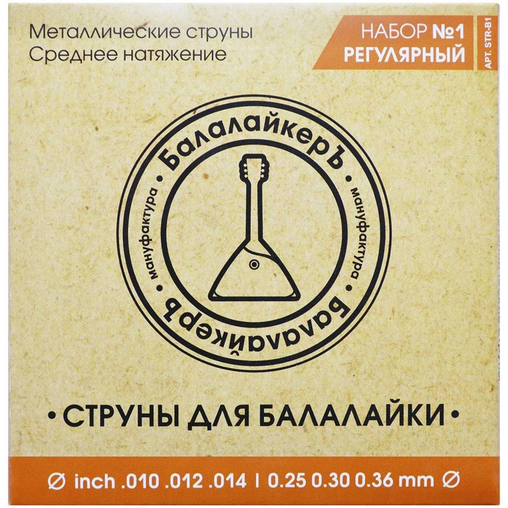 БалалайкерЪ STR-B1 Набор струн №1 "Регулярный" - комплект металлических струн для балалайки. Предназначен для использования на традиционных балалайках со стандартным 16-ладовым грифом и длиной мензуры в пределах 435-450 мм.