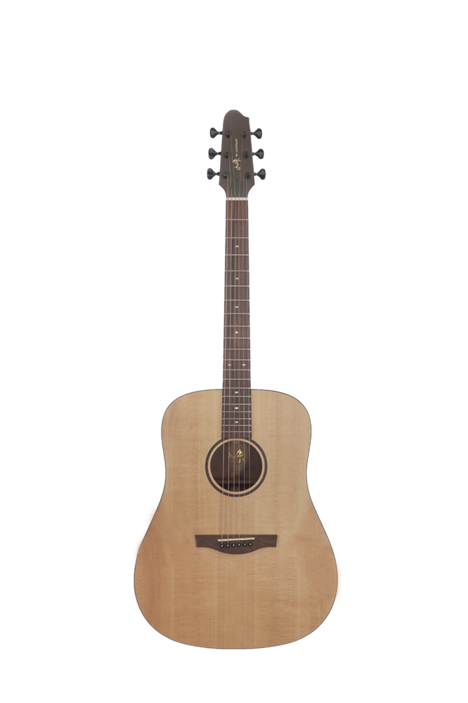 Корпус Корпус выполнен в форме Дредноут из массива AAA+ класса на верхней и нижней деке, обечайка выполнена из ламината. Верхняя дека из ситхинской ели, в сочетании с нижней декой из африканского махагони, формирует тёплое сбалансированное звучание с широким частотным диапазоном и яркой твёрдой атакой.