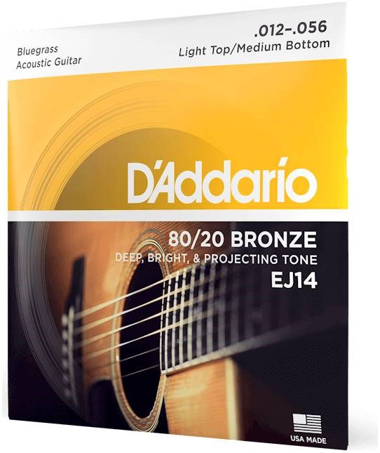 EJ14 Bronze 80/20 Струны для акустической гитары, 12-56, Light Top/Medium Bottom/Bluegrass D'Addario