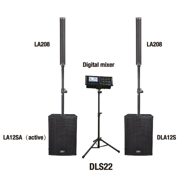 Комплект акустических систем: 2 х Акустическая система LA208, 1 х Сабвуфер с микшером DLA12S, 1 х Активный сабвуфер LA12SA. Soundking — первая компания предлагающая комплект акустических систем с рэковым цифровым микшером.