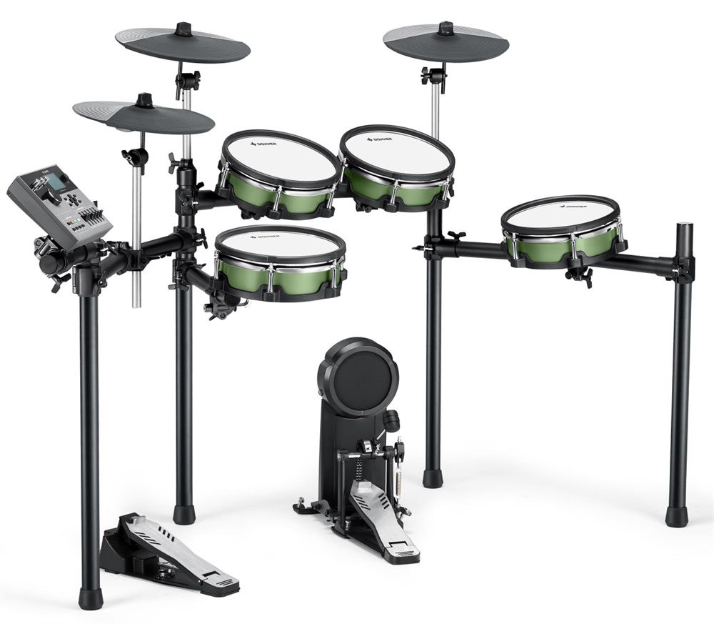 Кроме того, установка оснащена 12-дюймовым независимым хай-хэтом с датчиком точного позиционирования для полной имитации реальной игры и 12-дюймовым крэшем с двумя триггерами. В комплект входит: Двухзонный сетчатый пэд малого барабана 10" на отдельной стойке - 1 шт.Двухзонные сетчатые пэды томов 10" - 3 шт.Сетчатый пэд бас-барабана 7,5" подходит для одиночной и для двойной педали - 1 шт.Hi-Hat 12" - 1 пара.Crash 12" - 1 шт.Ride 12" - 1 шт.Модуль - 1 шт.Педаль - 1 шт.Блок питания и провода.Вес 40,2 кг.