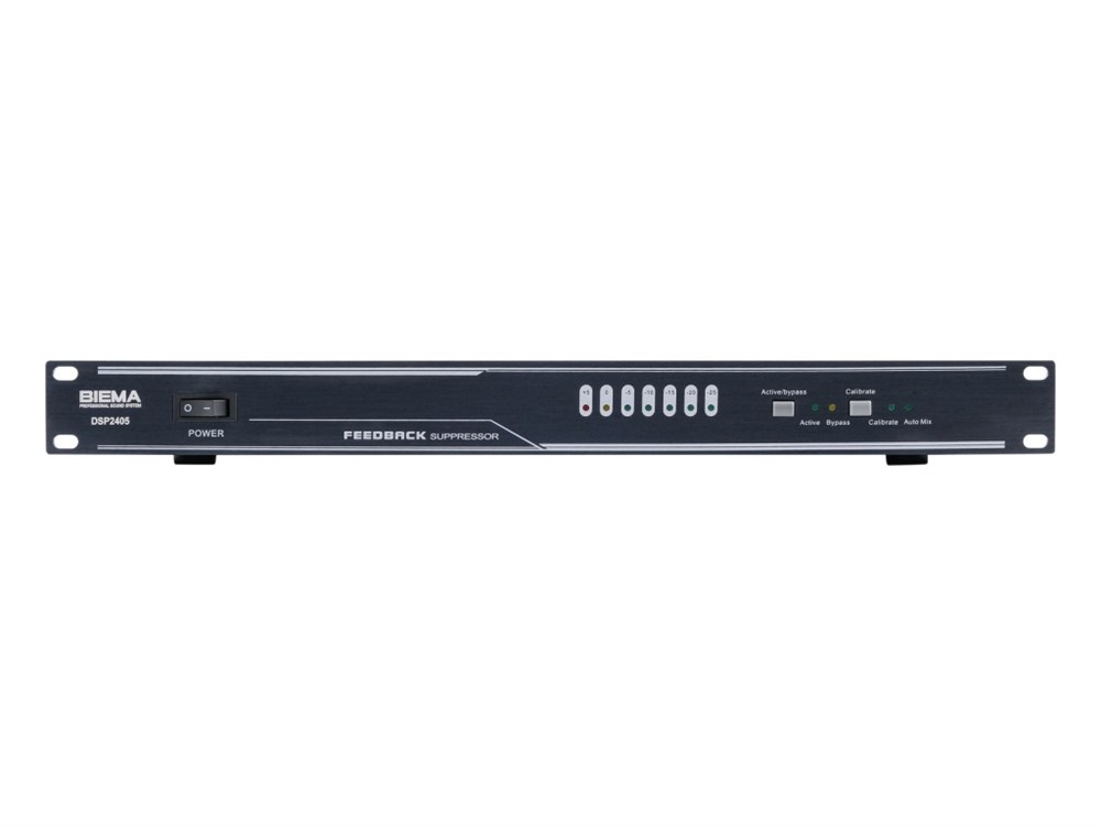 DSP2405 - это устройство обнаружения обратной связи, которое можно использовать в двухканальном или моно режиме. Система анализирует все частоты в тракте сигнала, определяет причину эффекта Ларсена и устраняет его, внедряя 12 высокоточных режекторных фильтров в реальном времени, которые имеют затухание - 45 дБ.