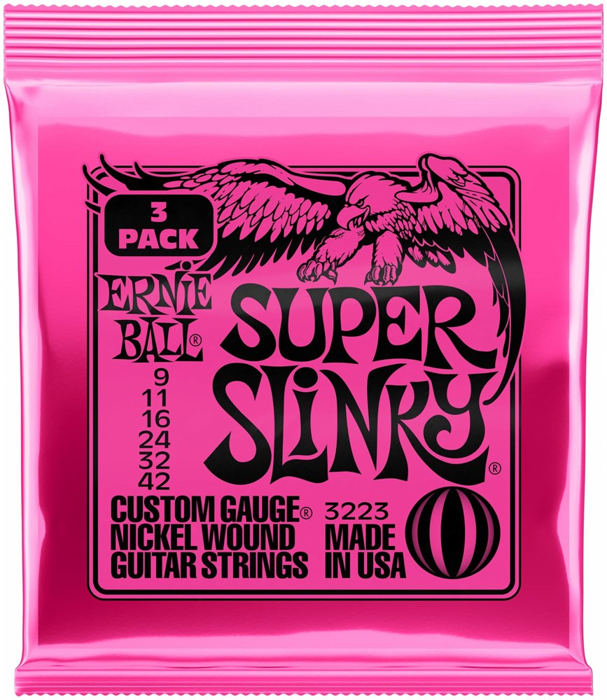 Набор из 3х комплектов струн Ernie Ball 3223 серии Super Slinky Nickel Wound для электрогитары является одним из самых популярных среди струн серии Nickel Wound.