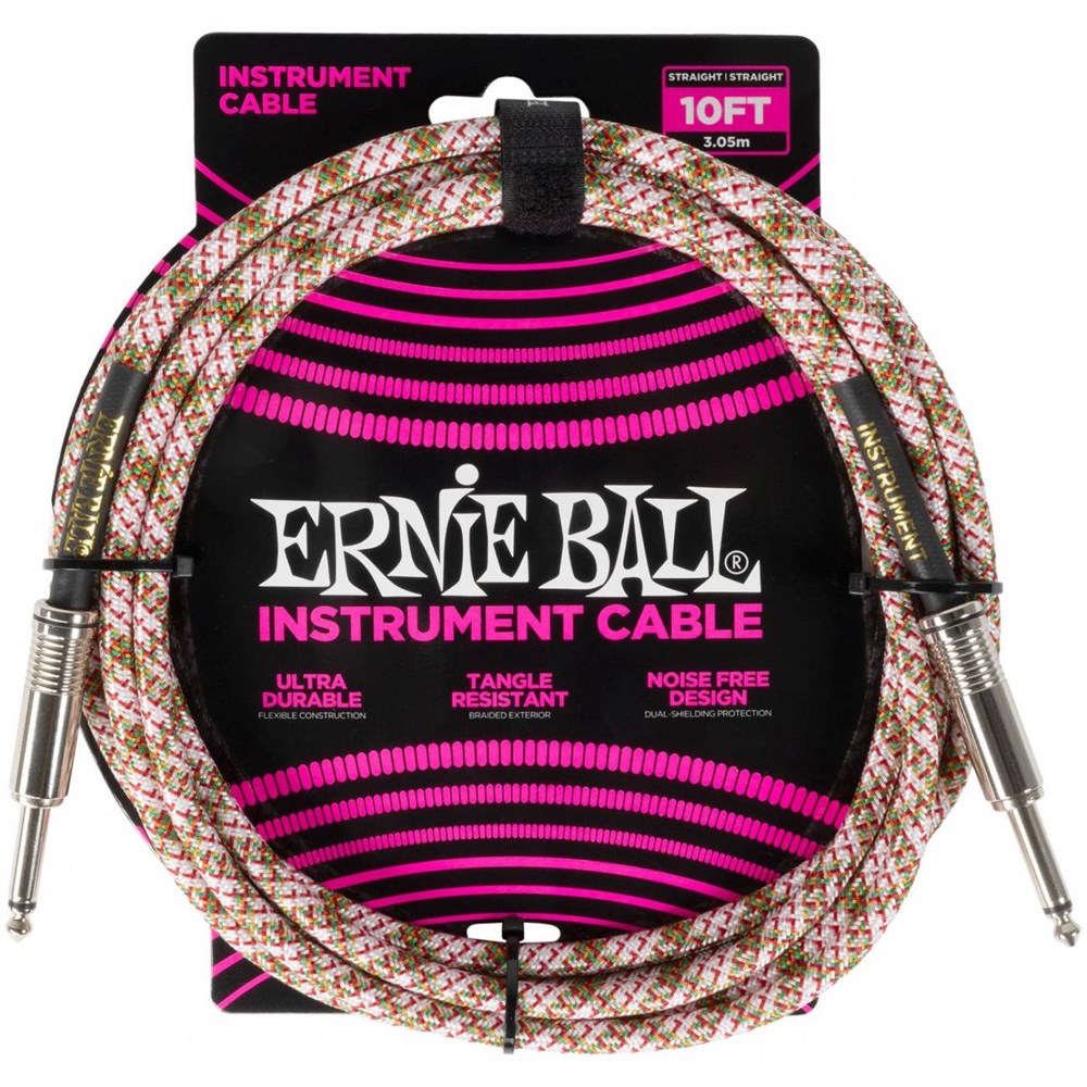 ERNIE BALL 6426 - кабель инструментальный, оплетёный, 3,05 м, прямые джеки, белый/красный/зеленый