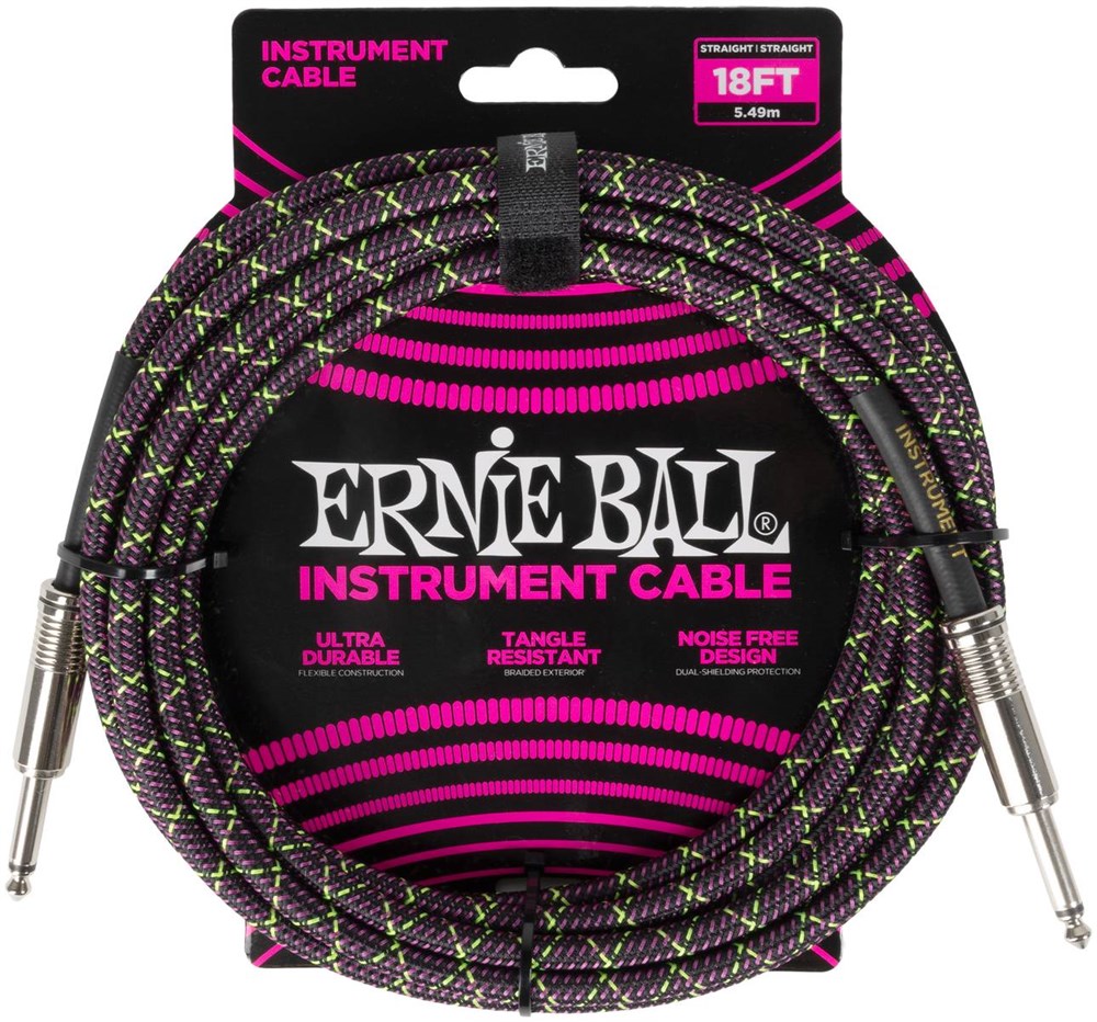 ERNIE BALL 6431 - кабель инструментальный, оплетёный, 5,49 м, прямые джеки, фиолетовый/зеленый