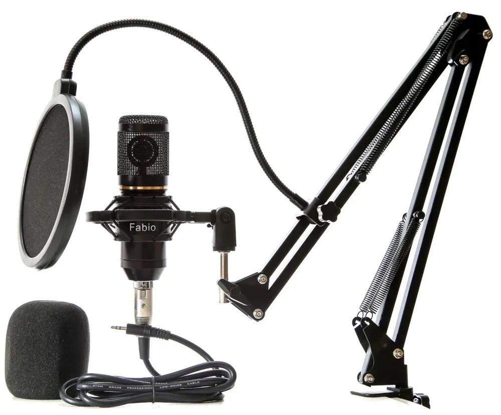 Fabio Черный Конденсаторный студийный микрофон со стойкой и поп-фильтром