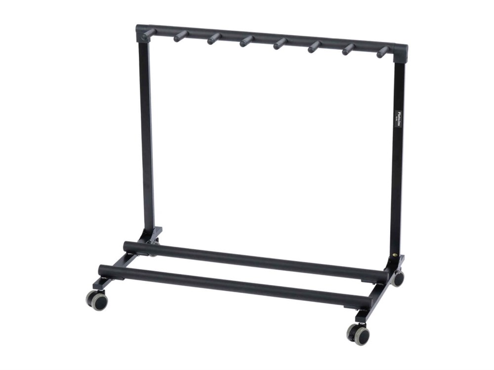 Напольная тележка, вмещает до 7 гитар. Высококачественная металлическая конструкция обеспечивает надежную опору для ваших инструментов.