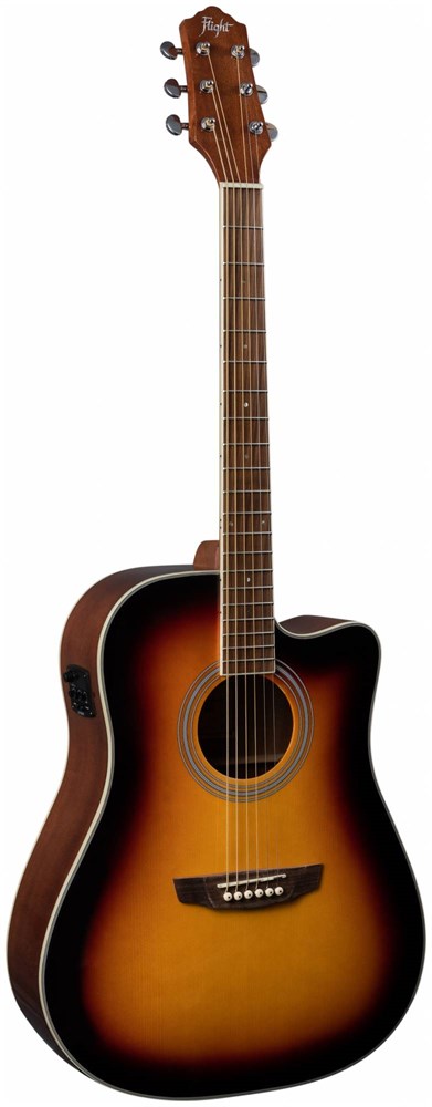FLIGHT AD-200 CEQ 3TS - электроакустическая гитара с вырезом, цвет санберст, скос под правую руку