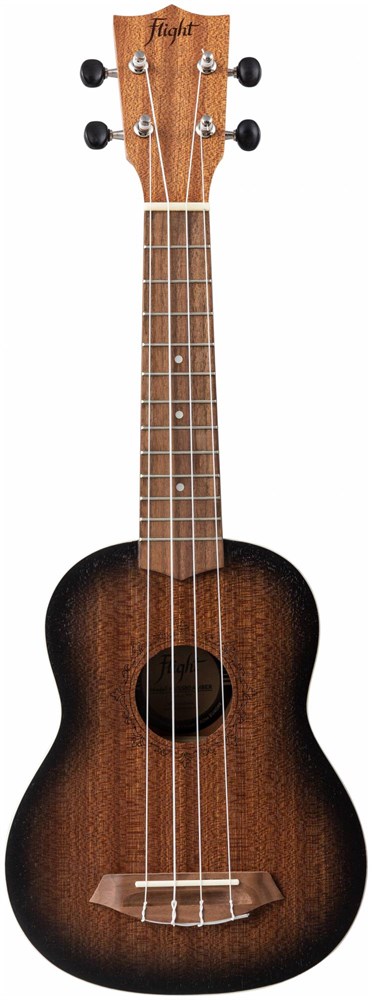 Модель Flight NUS380 AMBER санберст укулеле размера сопрано. Верхняя дека и корпус сделаны из разновидности красного дерева - сапеле.
