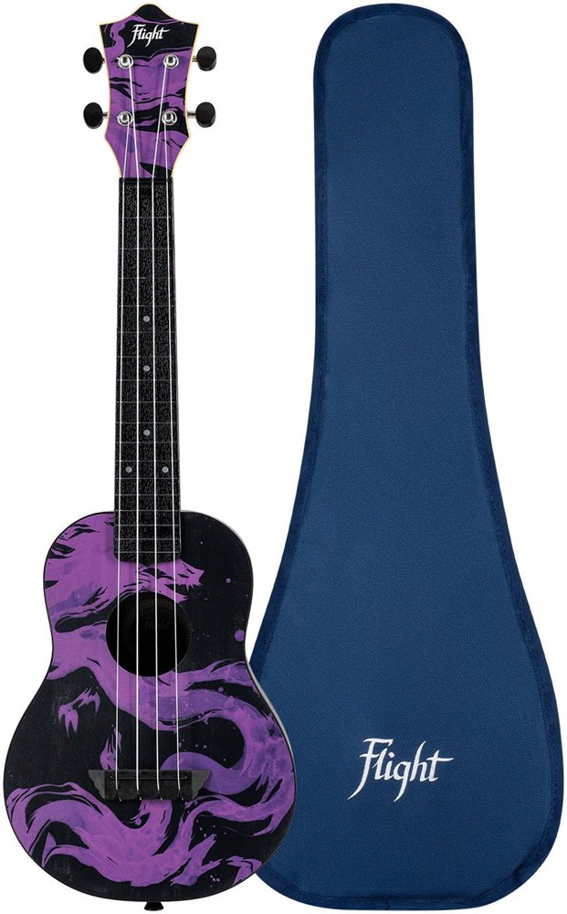 Мистический фиолетово-чёрный принт с изображением дракона как будто создан для тех, кто познал мудрость, печаль и тайны восточной философии. С укулеле FLIGHT TUC-40 DRAGON так легко оставаться наедине с собой, вдали от городской суеты и писать песни с глубоким смыслом.