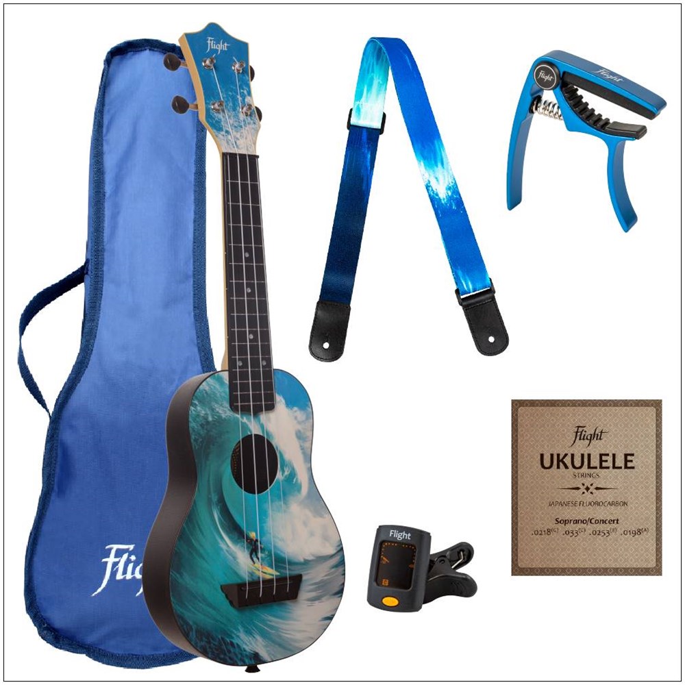 FLIGHT TUS-25 SURF dPACK 1 - комплект: укулеле сопрано, чехол, тюнер, струны, каподастр, ремень