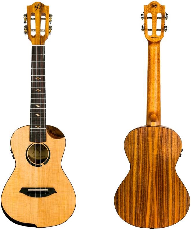 Роскошный подбор дерева - верхняя дека из массива ели и нижняя дека с обечайкой из обеспечивающей прекрасный резонанс коа ( акации) - дерева, традиционно использующегося для создания укулеле на Гавайях - ключ к живому, динамичному, полному обертонов звучанию, с которым вы ощутите себя царствующей особой в мире акустического саунда.