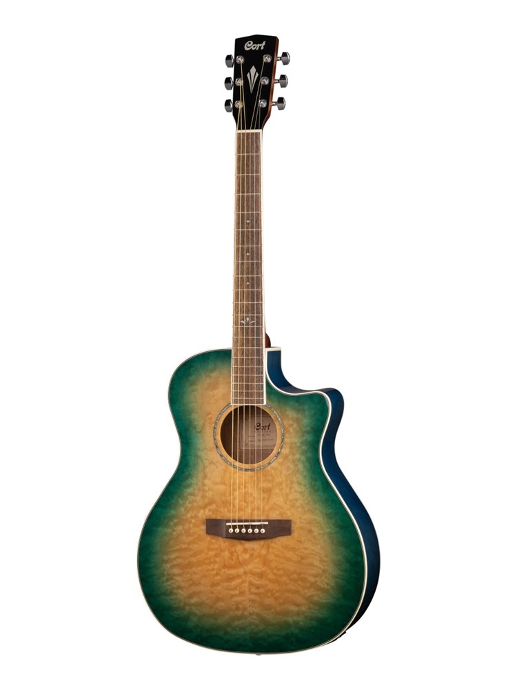 Cort GA-QF-CBB Grand Regal Series Электроакустическая гитара, с вырезом, прозрачный синий