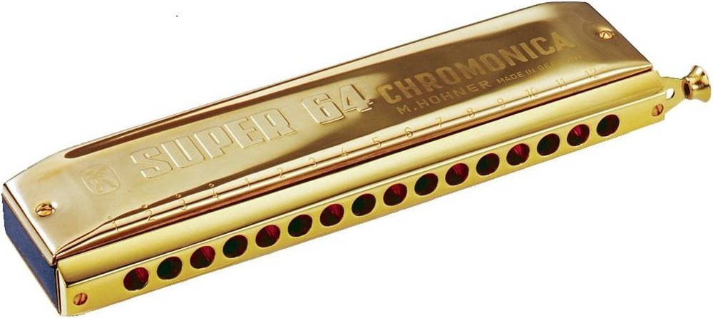 HOHNER Super 64 - Топовая 64 язычковая модель с диапазоном в 4 полных октавы. Этот инструмент является стандартом качества среди губных гармошек и обладает широким динамическим диапазоном. Двойная толщина пластин позволяет получить мощный и объемный звук. Высокоточный слайд и мундштук выполнены из серебра. Данные модели относятся к профессиональным хроматическим гармошкам. Эксклюзивные материалы наряду с современными технологиями гарантируют великолепный звук этих инструментов примиум класса.
