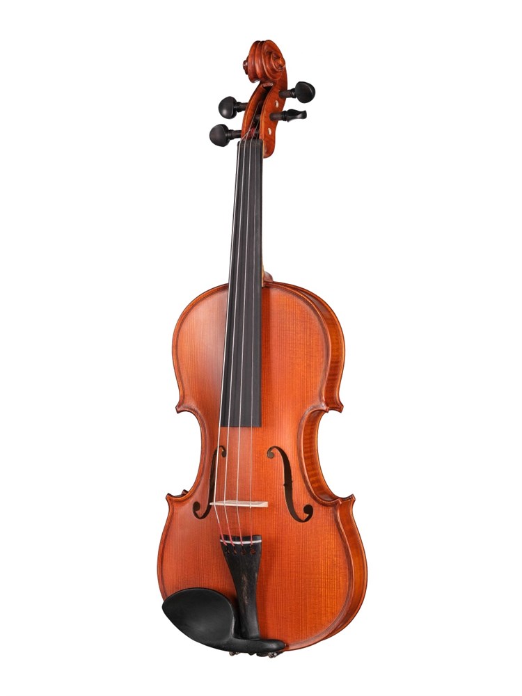 Колки, накладка грифа, подбородник и струнодержатель из черного дерева. Инструмент вручную покрыт масляным лаком..