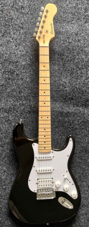 Комплект из электрогитары, комбоусилителя, кабеля, чехла, ремня и медиаторов. Электрогитара SST 01: Комбоусилитель мощностью 10 Вт.