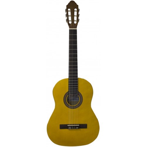 Классическая гитара Belucci BC3915 N размер 39" дюймов (4/4), 6 нейлоновых струн, 19 ладов, колки хромированные с белыми пластиковыми бутонами. Материал корпуса из комбинированной древесины, отделка инструмента-матовый лак бежевого цвета..