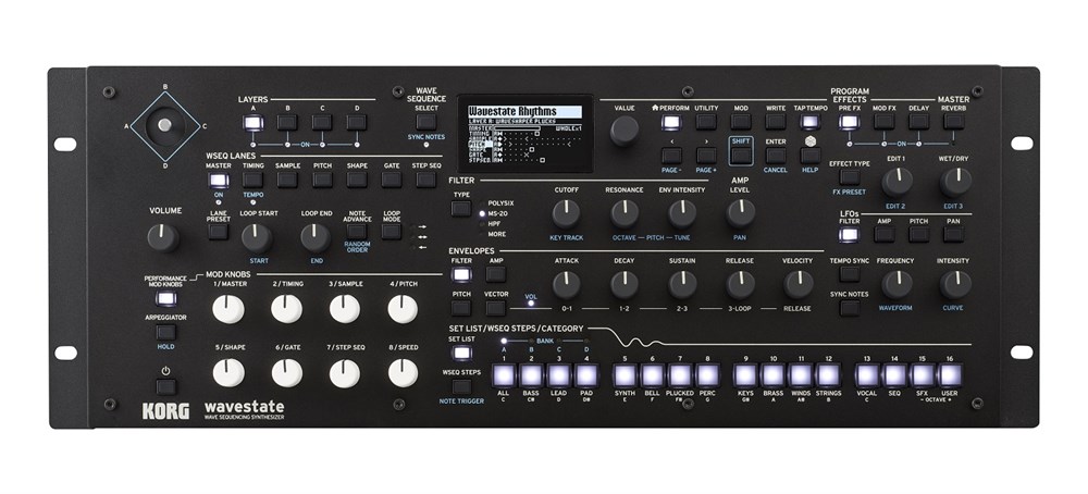 Wavestate Module - это настольная/рековая версия синтезатора Wavestate MKII, цифрового синтезатора, использующего таблично-волновой синтез, секвенсирование и сэмплы. Волновой синтезатор Wavestate формирует тембр путём воспроизведения из памяти инструмента волновых форм, смешивая и управляя воспроизведением которых, можно получить бесконечное разнообразных звуков, в том числе с очень сложной фактурой.