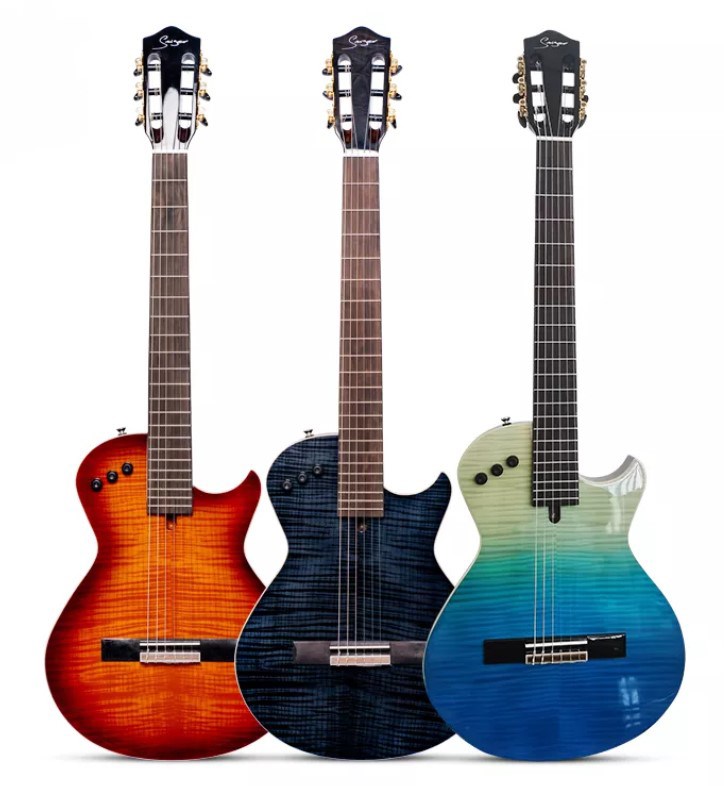 Сайлент гитара с нейлоновыми струнами и классической головкой грифа..