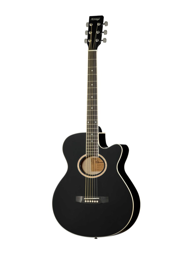 LF-401C-B Фольковая 6-струнная гитара 40" с вырезом. Верхняя дека - ламинат ели, задняя дека и обечайки - ламинат, гриф - клен, накладка грифа - палисандр, бридж - палисандр, колковая механика - хромированная, окантовка - 5-слойный кант, цвет- черный.