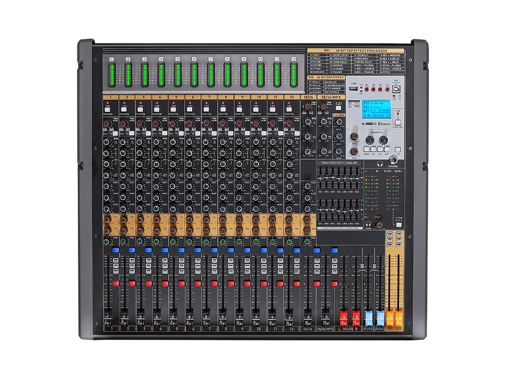 Встроенные два DSP-эффектора, один EFF с 24 видами DSP для настройки голоса, другой с 8 видами DSP для настройки инструментов. Кнопка MUTE на каждом канале.