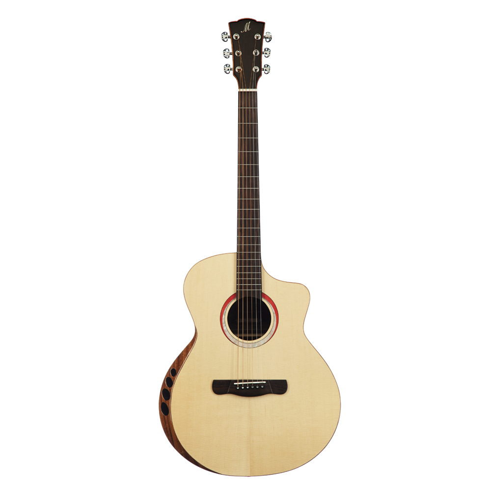 Корпус Гитара полностью сделана из материалов, заготовленных на собственной лесопилке и выдерживаемых от 5 лет до нескольких десятилетий. Верхняя дека из массива ели AAA+ класса, в сочетании с нижней декой и обечайкой из отборного палисандра, формируют мягкое тёплое звучание со сбалансированным частотным диапазоном.