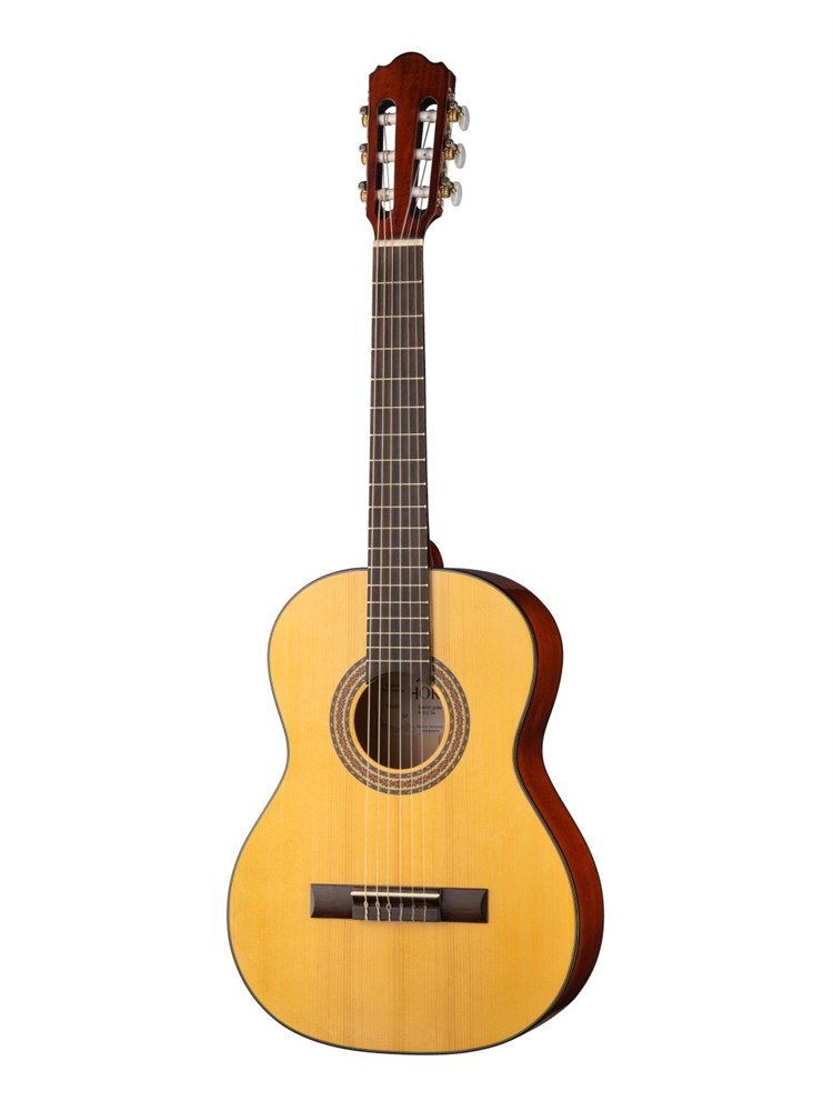 N1010-3/4 Spanish Классическая гитара 3/4. Верхняя дека - МАССИВ ЕЛИ, нижняя дека - МАССИВ КЛЕНА, Гриф - клен, накладка грифа - палисандр, розетка - врезная деревянная инкрустация. Hora. Румыния.
