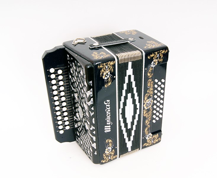 Трехголосая гармонь без регистра, звукоряд основан на неполной хроматической гамме. левая – двухрядная, кнопочная (25 кнопок).