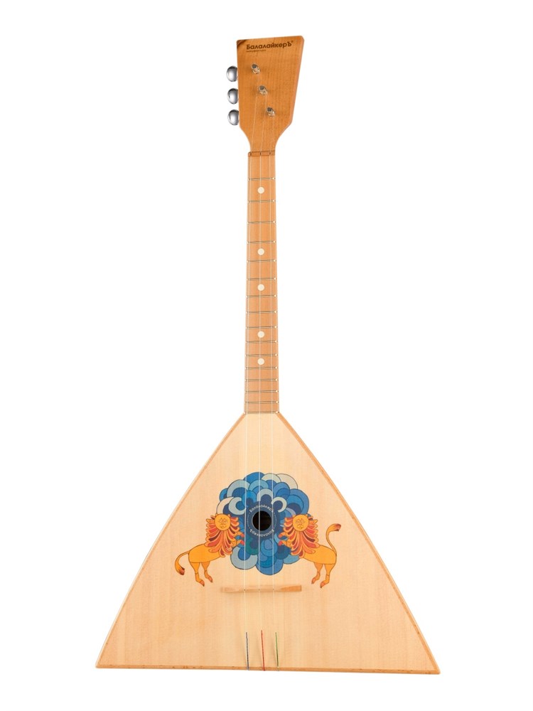 Подарочная балалайка серии Фолк-Декор модель БалалайкерЪ Северные Львы - это полноценная музыкальная балалайка с авторским рисунком на верхней деке.