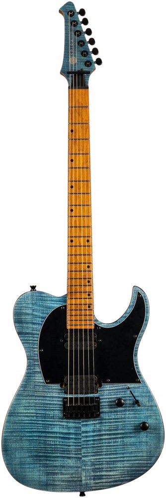 T-450, выполненная в прозрачном синем цвете, через который видна структура топа из огненного клена в сочетании с корпусом из запеченного тополя и грифом из канадского запеченного клена. Накладка грифа Ebony Tech, оснащенная 24 ладами Jumbo, обеспечивает плавную и отзывчивую игру, подходящую для различных сложных техник.