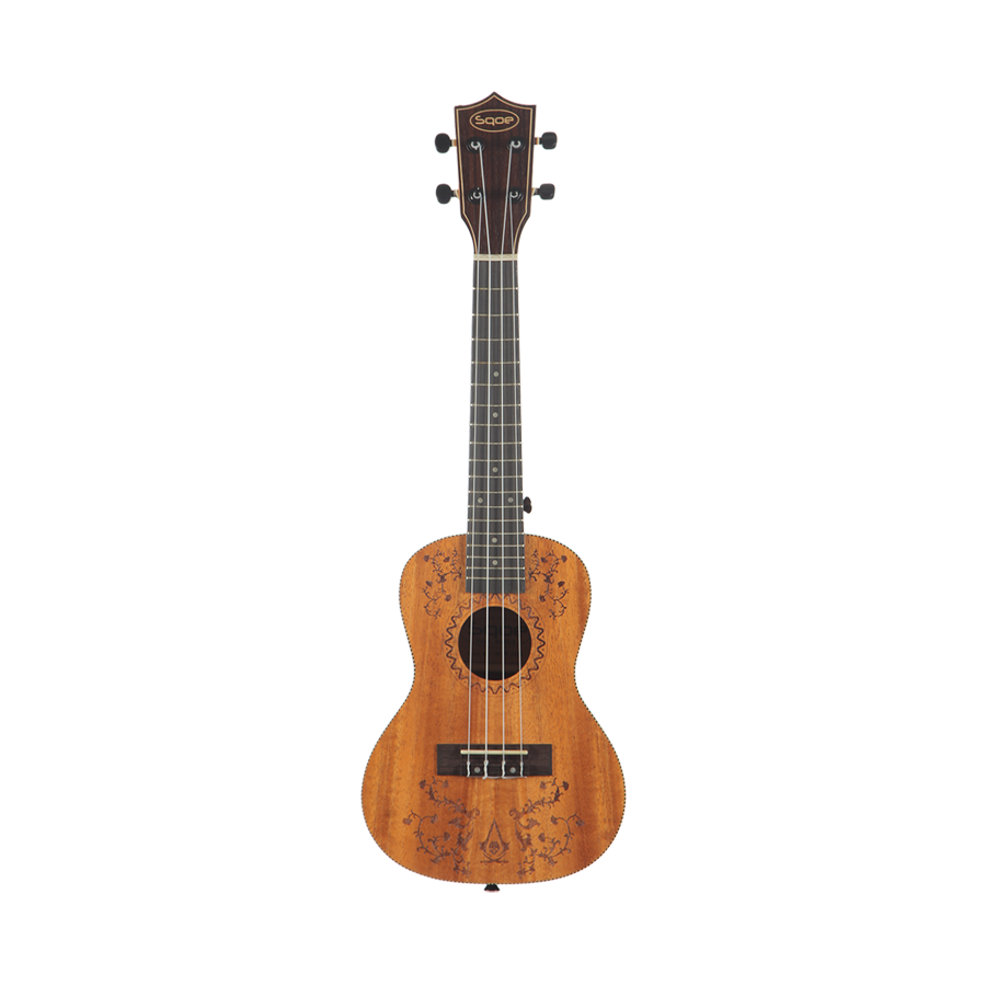SQOE SQ-UK-24TH концерт-укулеле и комплект аксессуаров Укулеле – это не только развлечение, но и серьезный музыкальный инструмент, который демонстрирует потрясающие возможности. Вся линейка SQOE SQ-UK-24 – это нестандартная серия с дизайнерским выполнением розетки и рисунков.