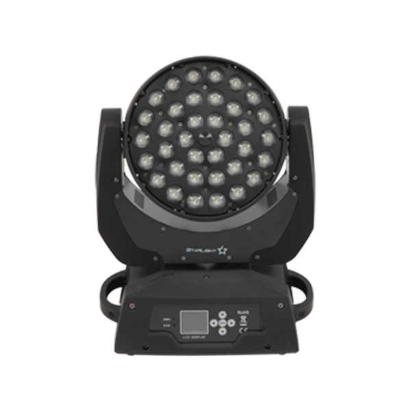 Starlight MH3610ZW 36*10W Moving Head Wash Light Вращающаяся голова Starlight MH3610ZW представляет собой профессиональное светодиодное оборудование фокусированного света с полным движением, предназначенное для сопровождения различных световых шоу и программ. Данная модель изготовлена по самым новейшим технологиям, обладает качественной линзой, светодиодом Osram 60 Вт 4-в-1, а также современным цифровым ЖК дисплеем.