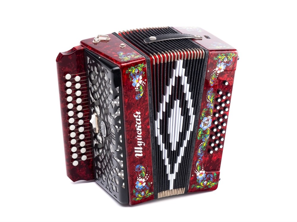 SZ32XYL-C-RED Гармонь "Шуйская" 25х25-III-2, красная, Шуйская гармонь Трехголосая гармонь, звукоряд основан на неполной хроматической гамме. Настройка - в розлив (аккордеонное звучание).