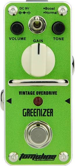 )TOMSLINE AGR-3 Педаль эффектов GREENIZER Vintage Overdrive, размер mini, питание от БП 9в