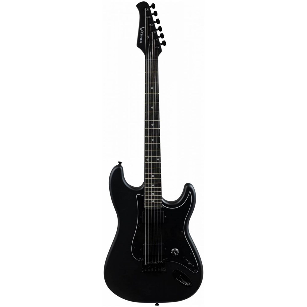 VESTON EST-BK - электрогитара в корпусе стратокастер из серии Extremo в черном матовом цвете с черным пикгардом и черной фурнитурой. Конфигурация звукоснимателей HH.