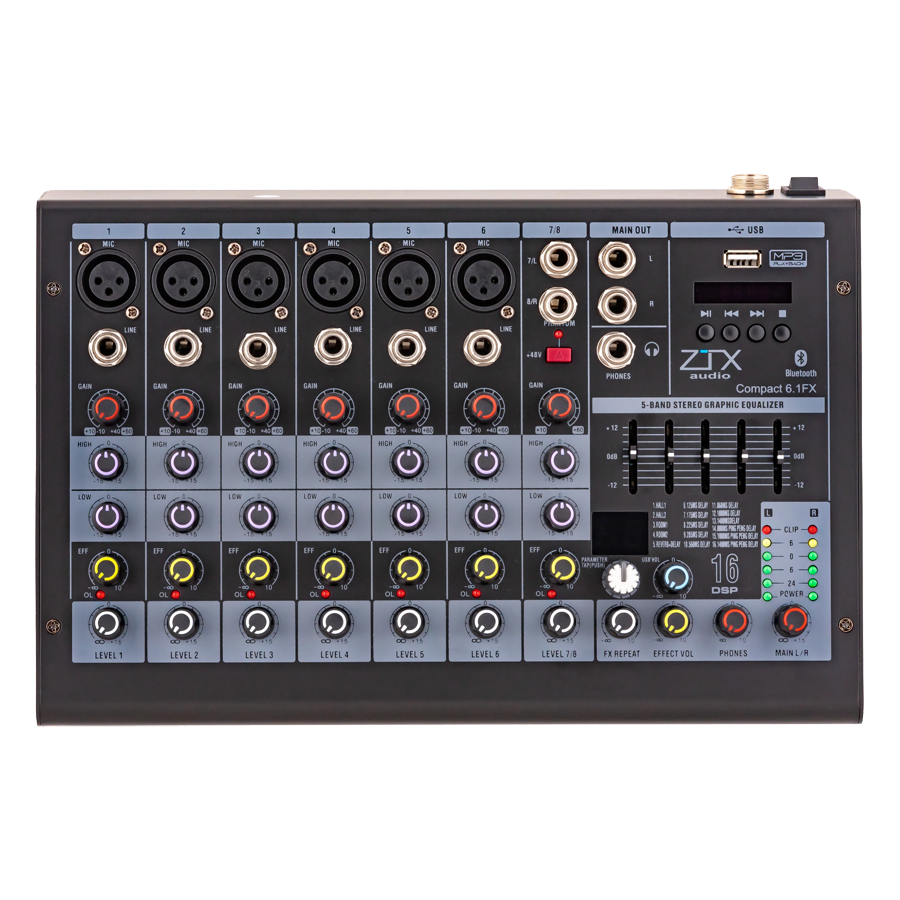 ZTX audio Compact 6.1Fx микшерный пульт 6mono, 1stereo каналы с MP3/DSP/BT