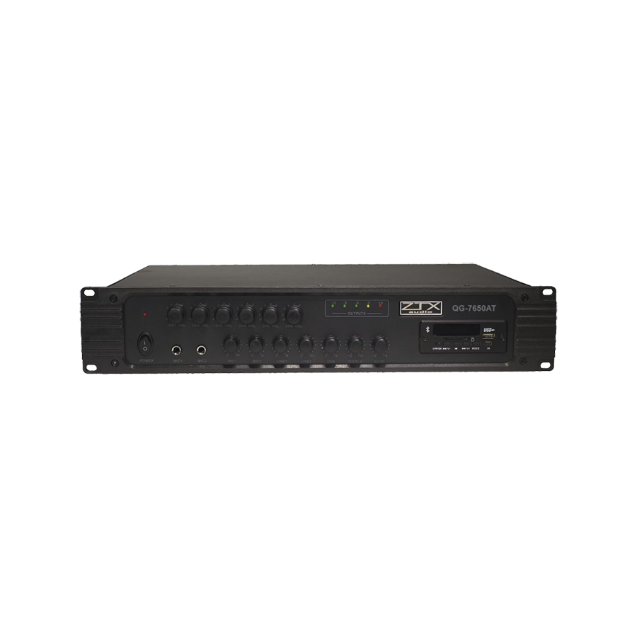 ZTX audio QG- 7650AT - это профессиональный трансляционный микшер-усилитель, предназначенный как для фонового озвучивания помещения, так и для систем оповещения. 600W- мощность отлично подойдет для задействования средних и больших площадей.